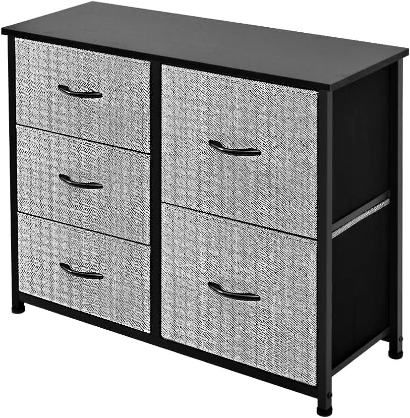 AZL1 Life Concept Wide Dresser Storage Tower with Sturdy Steel Frame, Wood Top, 5 Drawers of Easy-Pull Fabric Bins, Organizer Unit, Dark Grey 3-5