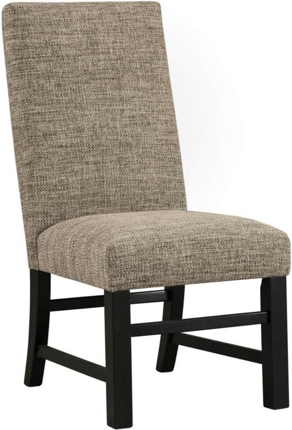 SET OF 2 DINING CHAIRS: Dressed to thrill. This simply stunning armless dining chair offers a high-design look at a down-to-earth price HANDSOMELY MADE: Frame made of wood. Comfortable high-quality foam cushion seat with webbed construction is upholstered in polyester. Finished in a dark, waxy brown oak hue SIMPLY STUNNING: Suitably upholstered in a tweed-like neutral fabric, the softly contoured back design is tailor-made for chic comfort INSTANT STYLE: These chairs are sure to spruce up your casual, minimalist or modern space with their neutral appeal. Each measures 20.5″ W x 24″ D x 35.5″ H. Seat height: 19.5″. Seat depth: 17.5″ ASSEMBLY REQUIRED: Easy-to-follow instructions, hardware and tools included. Two people recommended